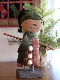 アメリカのメーカーがデザインしたスノードール。渋めのナチュラルカラーのスノーガールで、スノーボールのボタンがかわいいアクセントです。1点ずつ仕上げやサイズが異なります。写真のツリーやキルトは別売りです。