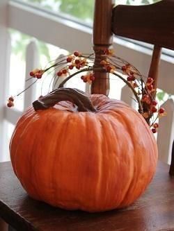 アメリカのメーカーがデザインした大きめのリアルなパンプキン。渋めのオレンジにリースや文字が彫られたデザインのプリミティブな仕上げです。レジン製で、1点ずつ多少仕上げや状態が異なります。写真のリースは別売りです。