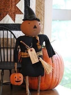 アメリカのメーカーがデザインした大きめのパンプキンドール。黒のボディにほうきを持った魔女のドールに、ショップオリジナルでタグとミニパンプキンをセットにしました。廃番デザインのため、再入荷は未定です。後ろにハンギング用の糸付き。