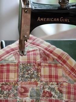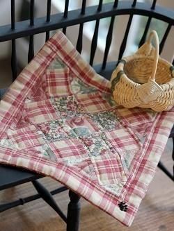 アメリカのBoyds Bears社が1990年代に限定で発売したミニキルト。レッドチェックと花柄の布のスクエアパッチワークで、裏地はチェック地です。裏にキルトバー通し付き。廃番のレアなアイテムで、再入荷は未定です。