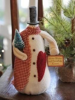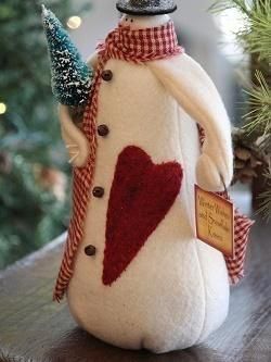 アメリカの作家さんが手作りしたスノーマンのドール。オフホワイトのボディにホームスパンのロングマフラーの背の高いスノーマンで、大きなハートのアップリケとサインを持っています。ハンドメイドのため、1点ずつ布や仕上げが多少異なります。