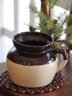 オハイオ州にあった陶器メーカーのRRP社のポタリー。ダークブラウンとライトベージュの2色使いで、アーリーアメリカンな雰囲気の大きなピッチャーです。古いものですが、できるだけきれいな状態のものを選んでいます。底に刻印入り。写真のツリーSは別売りです。