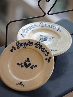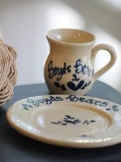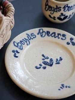 アメリカのBoyds Bears社が限定発売したミニポタリー。アメリカのポタリーメーカーが1点ずつ手作りした、ハートやロゴの絵付けが素敵なポタリーです。写真のバスケットはディスプレイ。廃番アイテムのため、入荷ごとに状態や価格は異なります。ハンドメイドのため、多少のキズや色むらはご了承ください。