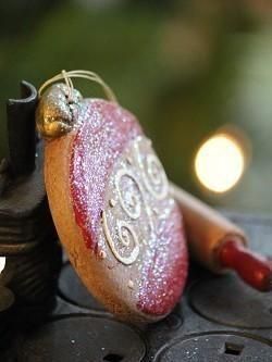アメリカのSalem Collection社が手作りしていたレジン製のオーナメント。焼いたクッキーのような風合いで、キラキラ仕上げのガラスボールのデザインです。ハンドメイドのため、1点ずつ多少異なり、小さなキズや色むらはご了承ください。ハンギング用ひも付き。