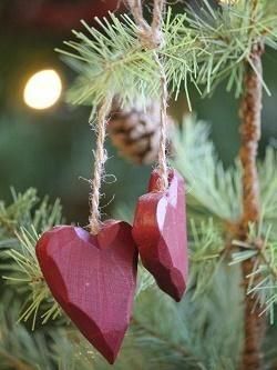 アメリカのメーカーで作られた木製のオーナメント。バーガンディのハートが麻ひもでつながったハンギングタイプです。アンティーク仕上げのため、1点ずつ多少異なります。廃番のため、再入荷は未定です。