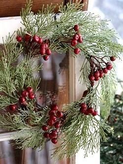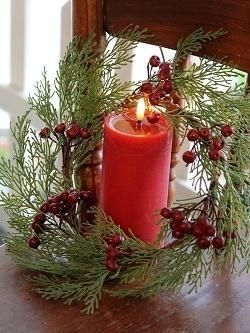 シダーとベリーを組み合わせた冬のリース。渋めの細いグリーンにクランベリーを組み合わせたナチュラルな雰囲気のリースです。ピラーキャンドルと合わせても素敵です。1点ずつ多少仕上げやサイズが異なります。写真のピラーキャンドルは別売りです。