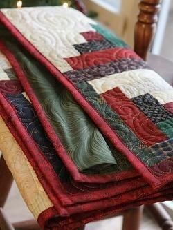 アメリカの作家さんが手作りした少し大きめの壁掛けキルト。バーガンディやネイビーなど渋めのカントリーカラーで「Log Cabin」のパッチワークにミシンキルティングで丁寧に仕上げています。キルトバー通し付き。