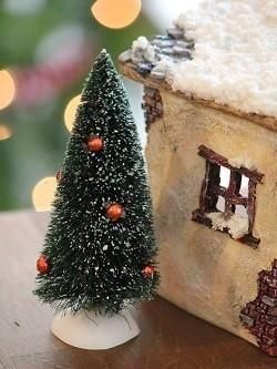 アメリカのメーカー製のミニツリー。うっすら雪がついたような仕上げに赤いビーズがアクセントのツリーです。古いものですが、どれも全体にきれいな状態です。廃番アイテムのため、再入荷は未定です。