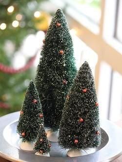 アメリカのメーカー製のミニツリー。うっすら雪がついたような仕上げに赤いビーズがアクセントのツリーです。古いものですが、どれも全体にきれいな状態です。廃番アイテムのため、再入荷は未定です。