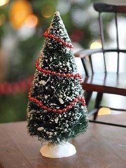 アメリカのメーカー製のミニツリー。雪をかぶった枝にきらきらの赤いガーランドがかわいいツリーです。古いものですが、全体にきれいな状態です。写真のほかのサイズや別売りです。廃番のため、再入荷は未定です。