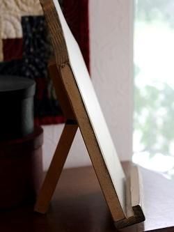 アメリカの作家さんが手作りした木製のブックスタンド。厚手の木に渋めのオフホワイトでアンティーク仕上げした丈夫なスタンドです。木製のハンドメイドのため、小さなキズなどはご了承ください。廃番のため、在庫かぎりです。写真の洋書は別売りです。
